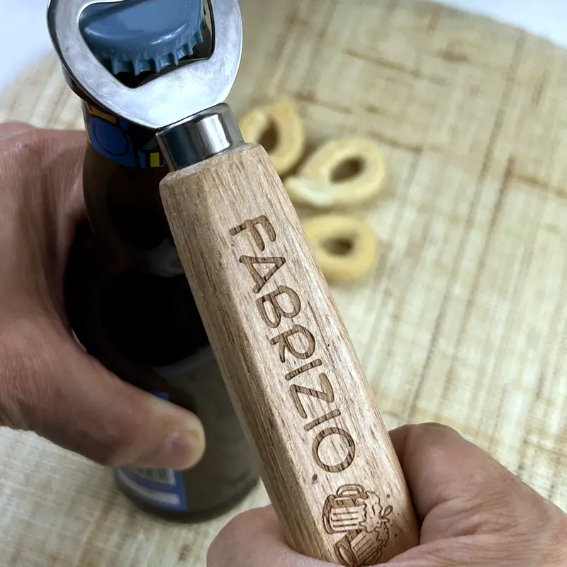 Apribottiglie personalizzato con manico in legno inciso con nome – Idea regalo festa del Papà