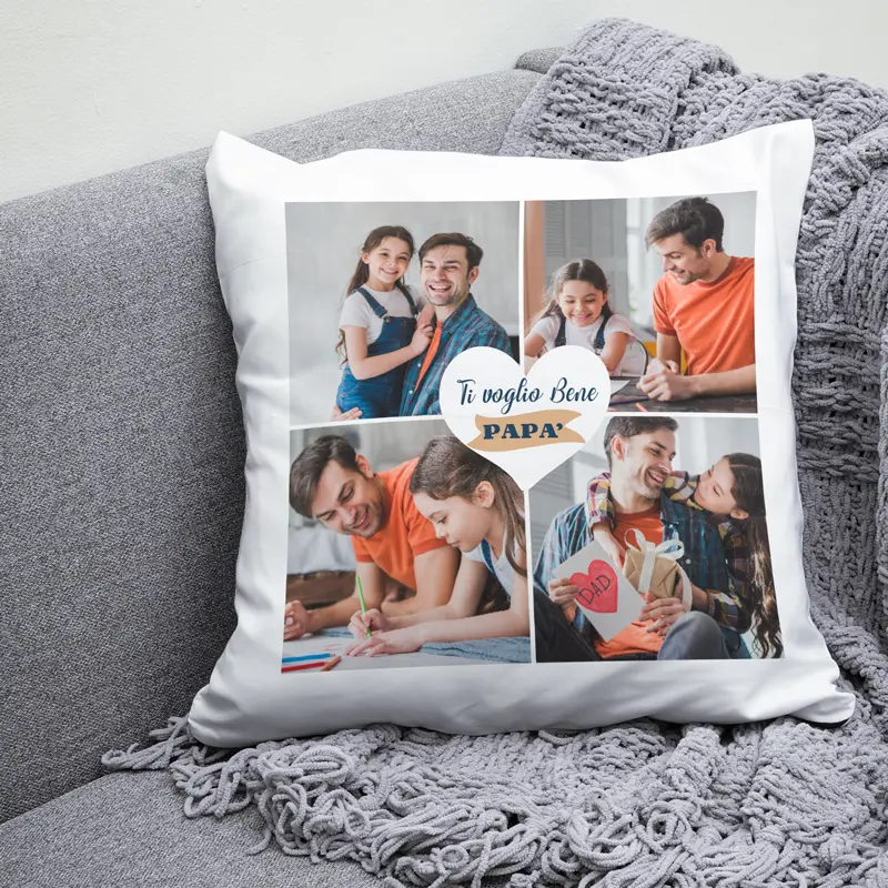 Cuscino personalizzato con 4 foto “Ti voglio bene papà” – Idea regalo Festa del Papà