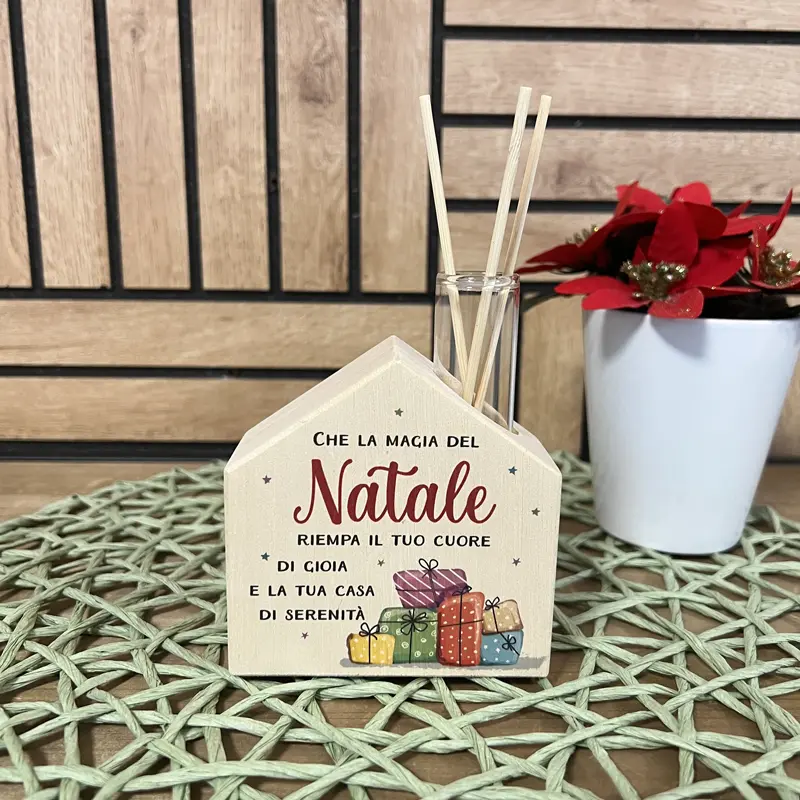 Il Natale è il momento perfetto per riempire la casa di calore, profumi e atmosfera speciale. Il nostro diffusore ambiente di Natale a forma di casetta in legno porta subito questa magia in ogni stanza, creando un angolo accogliente dove respirare serenità e gioia. È un oggetto elegante, raffinato e allo stesso tempo semplice, pensato per diventare un piccolo protagonista delle feste.