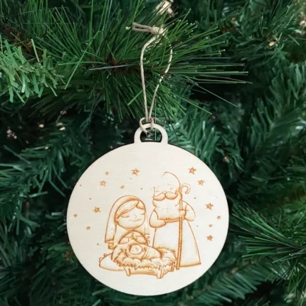 Pallina di natale in legno con scritto mamma e un cuore intagliato all'interno della pallina