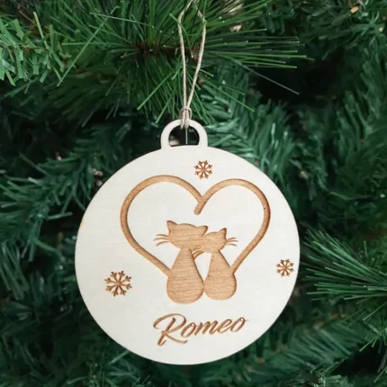 Pallina di Natale GATTI in Love in legno personalizzata con nome